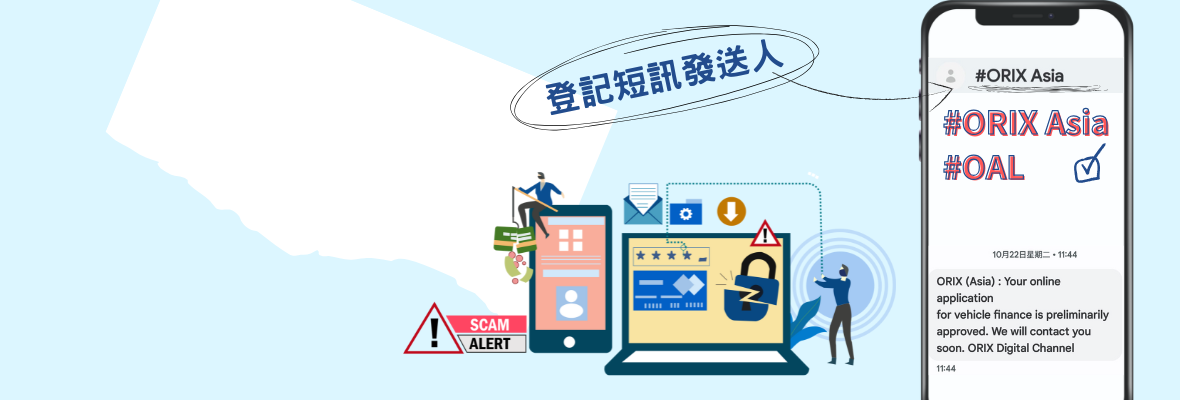 為保障歐力士全體客戶安全,請正確識別由本公司所發出之短訊來源